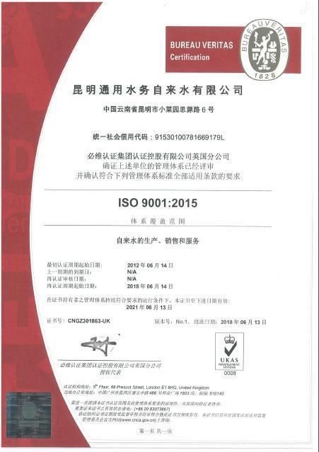 通過本次管理體系的升級(jí)再認(rèn)證,昆明通用水務(wù)為質(zhì)量提升行動(dòng)提供了有力抓手,為加強(qiáng)全面質(zhì)量管理提供了可行路徑,促進(jìn)了整體提高公司整體的質(zhì)量管理水平。